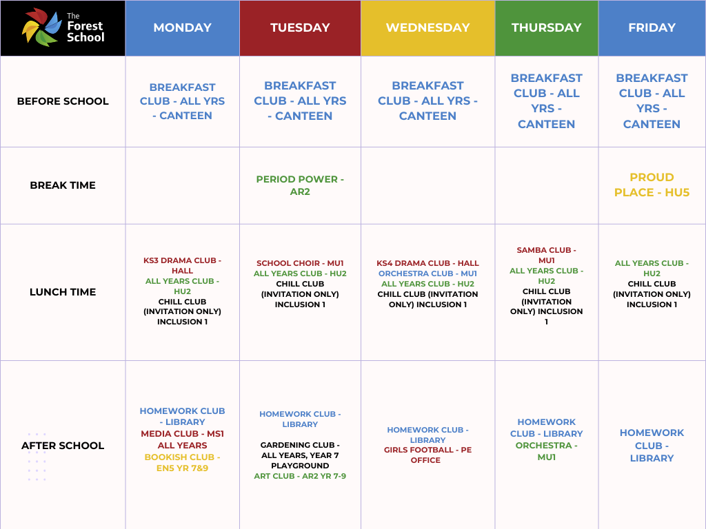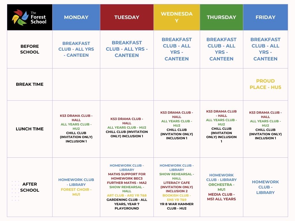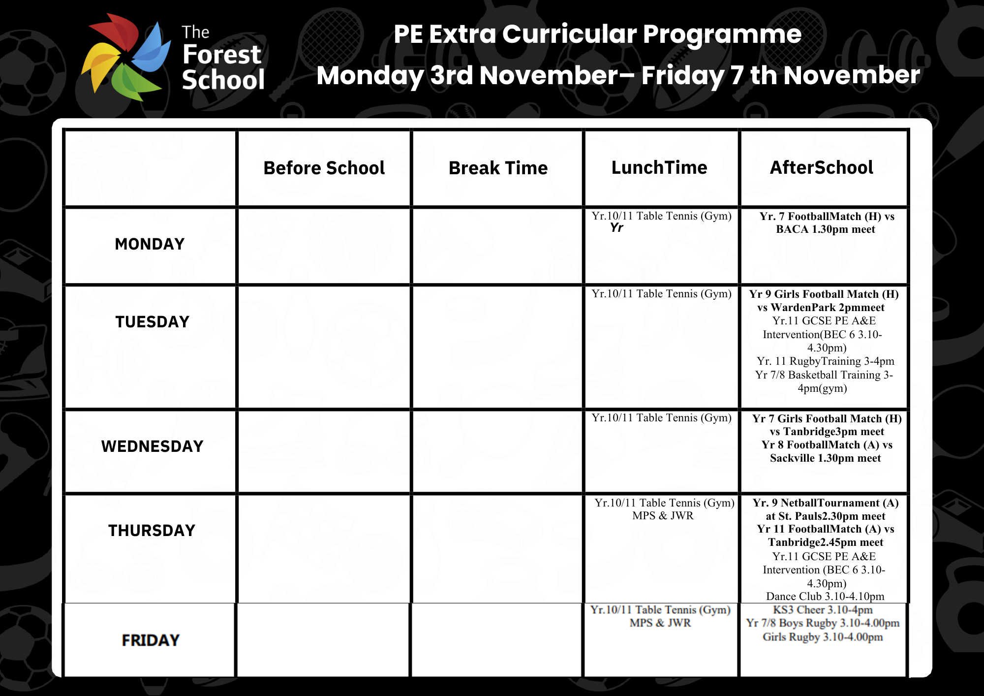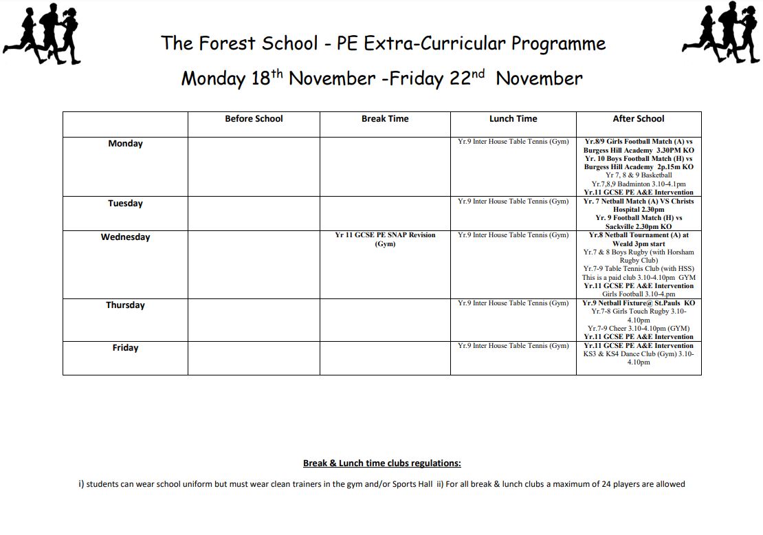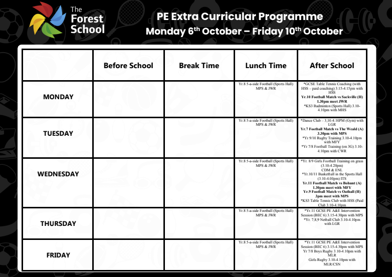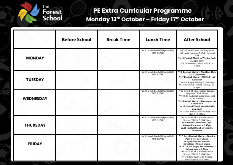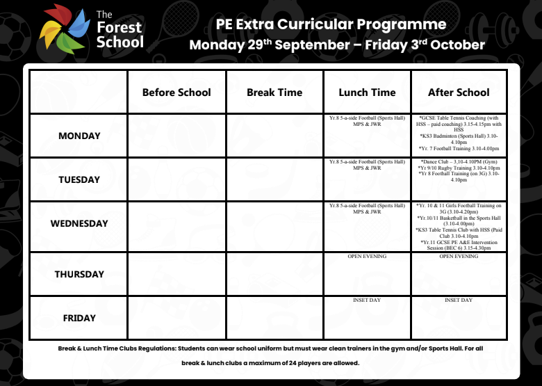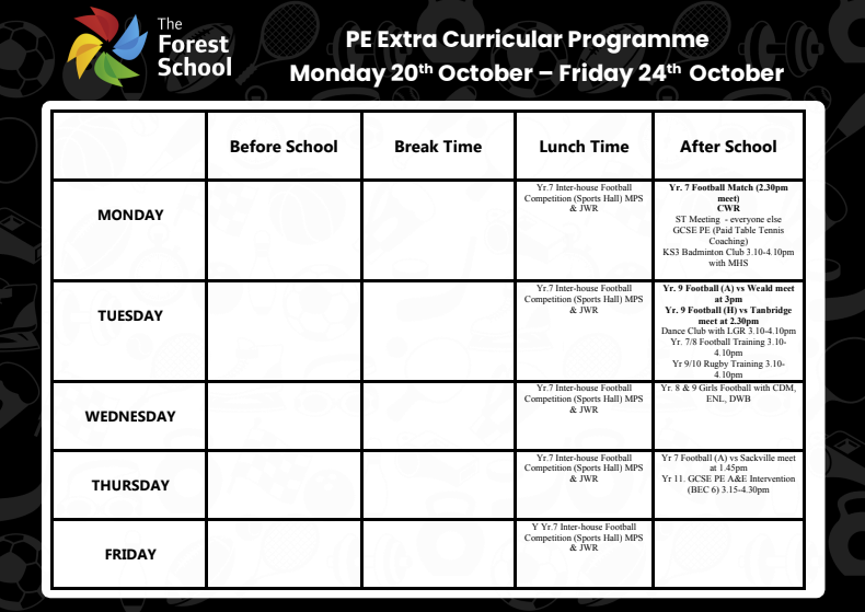 Student parent and staff version Mon 14th Oct Fri 18th Oct extra curricualr