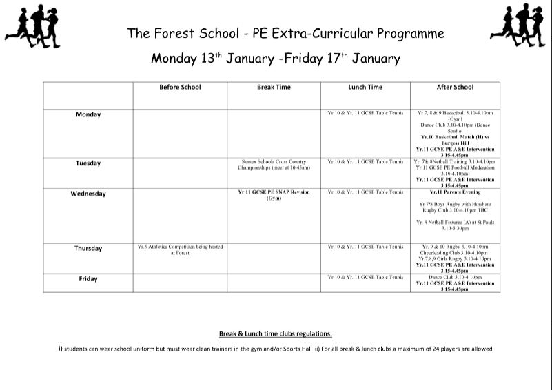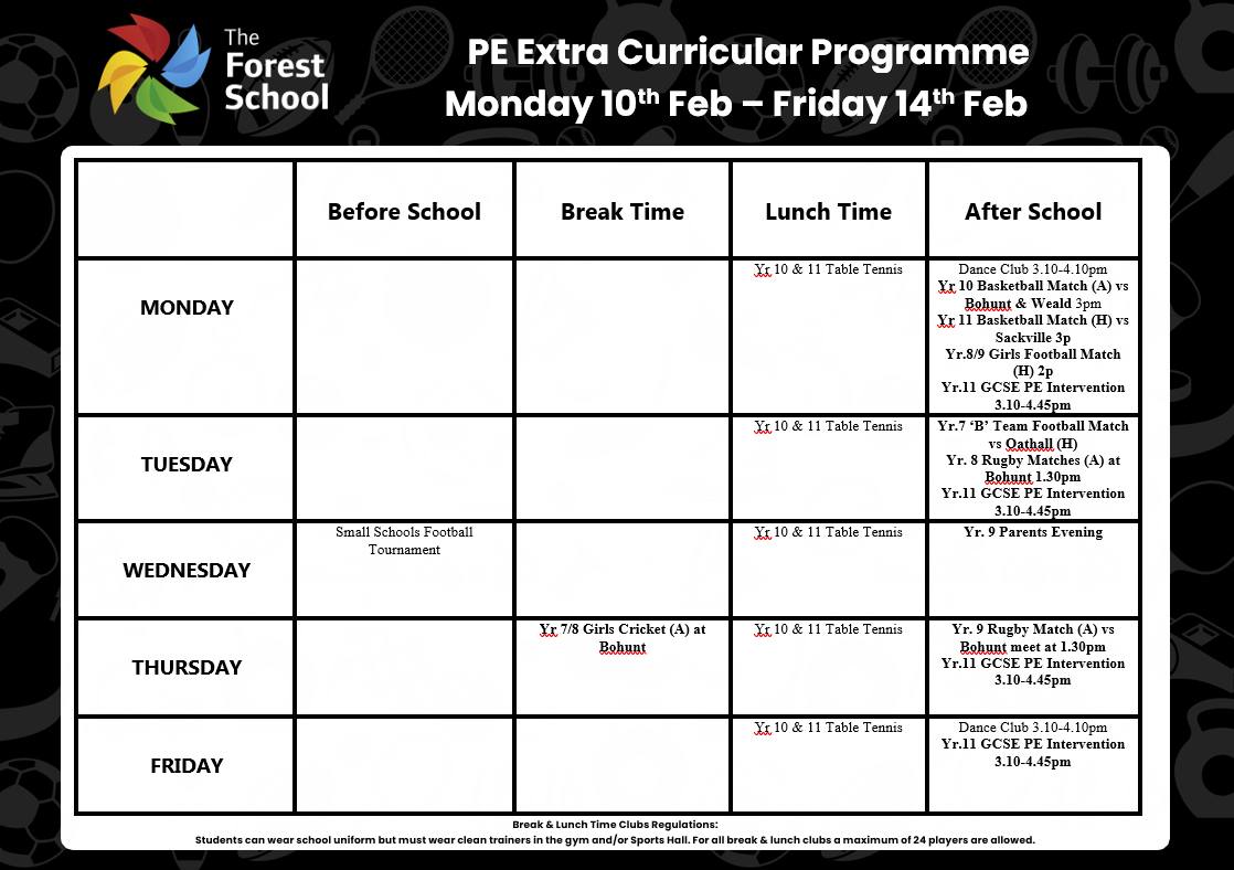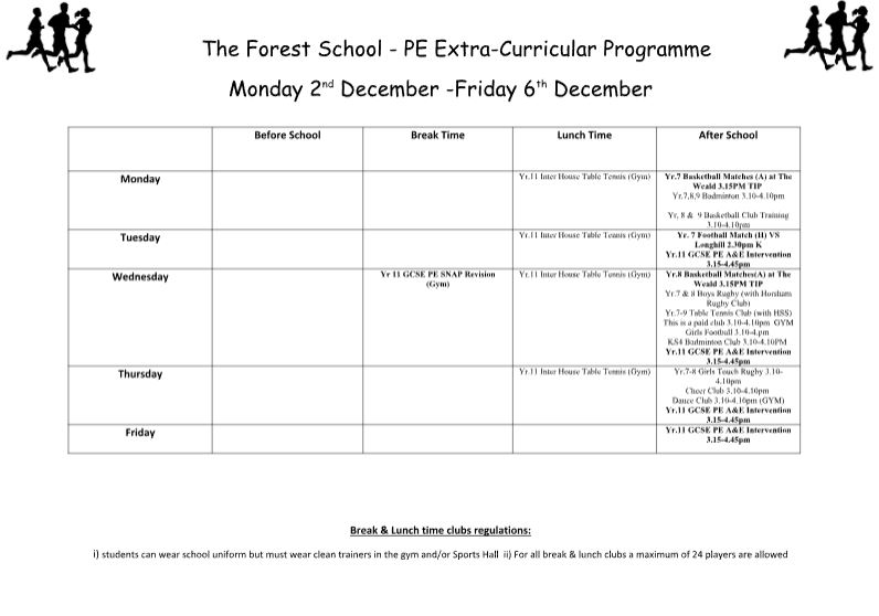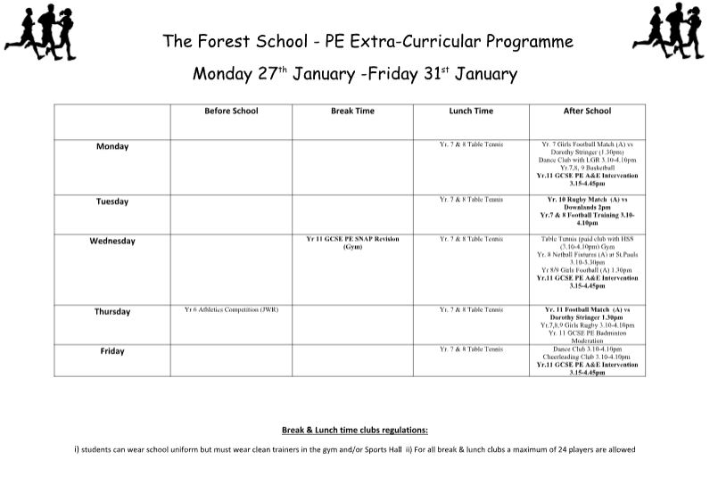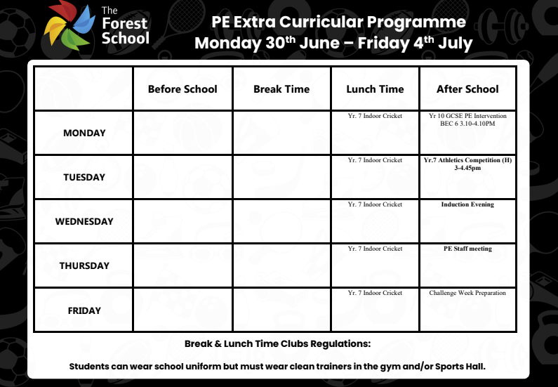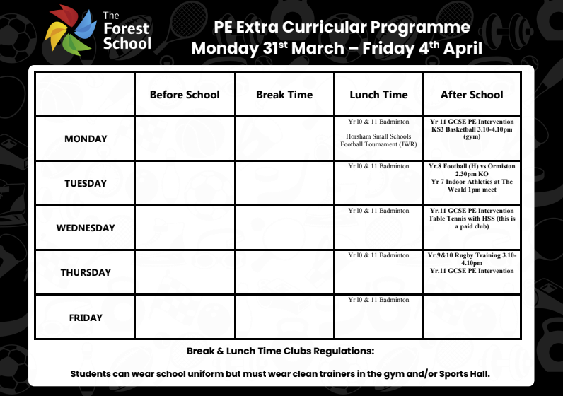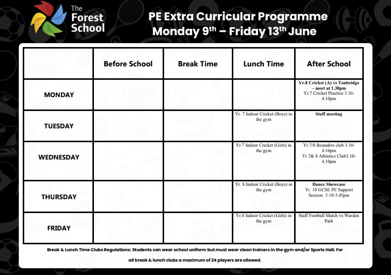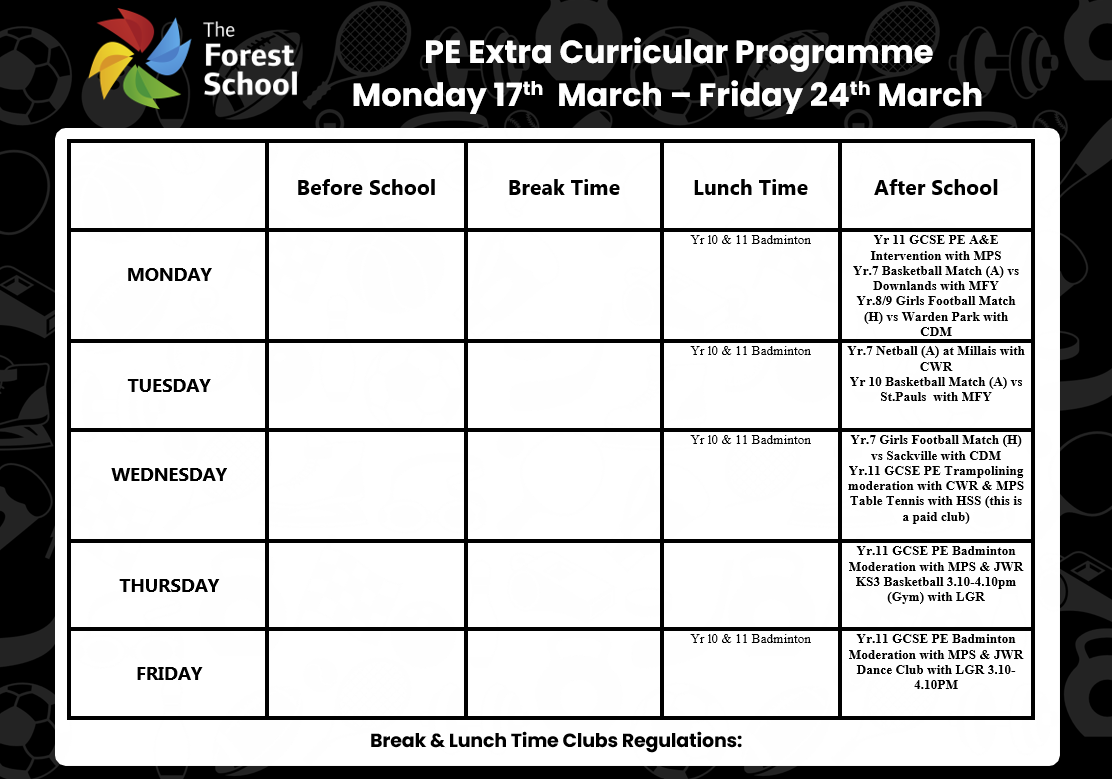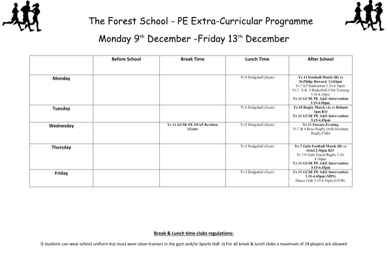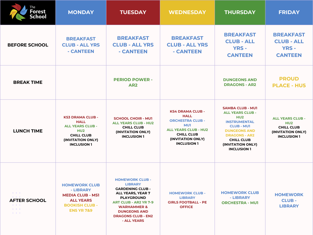Student parent and staff version Mon 14th Oct Fri 18th Oct extra curricualr