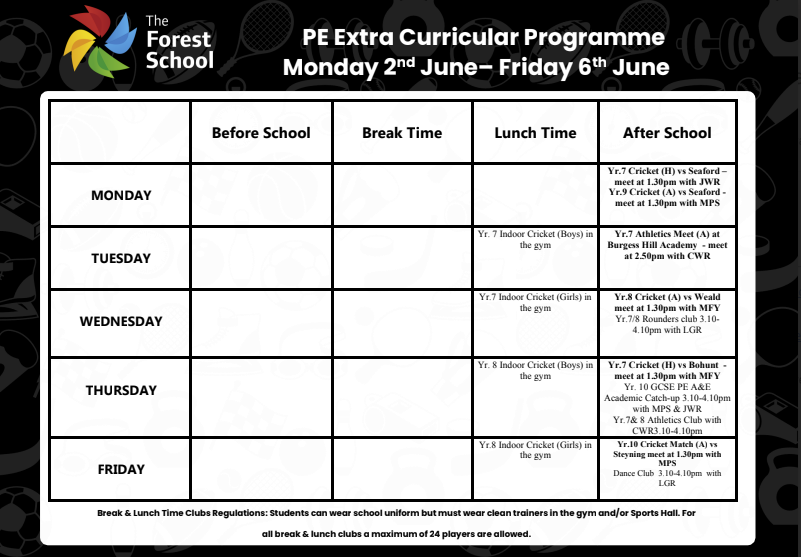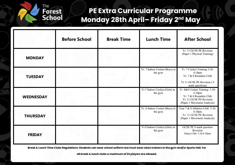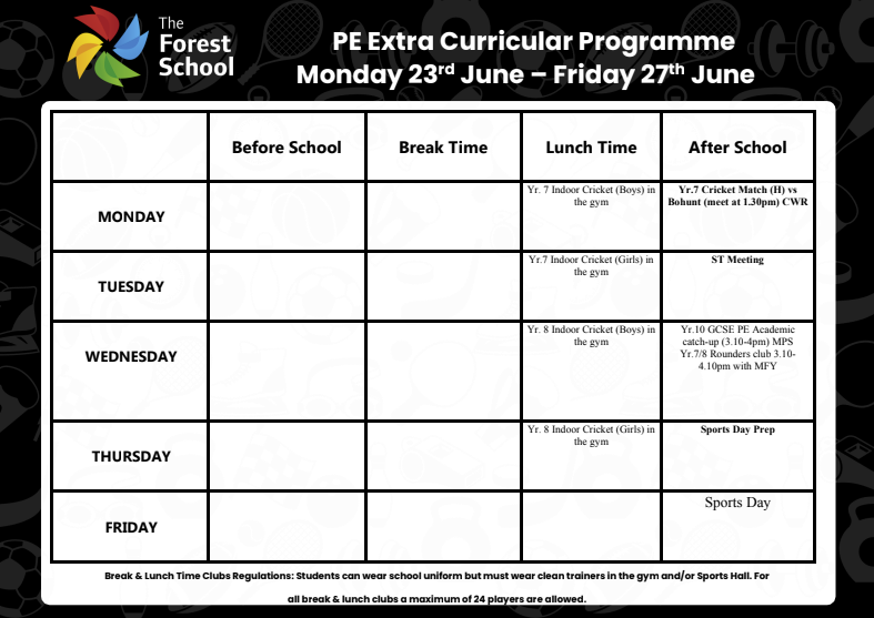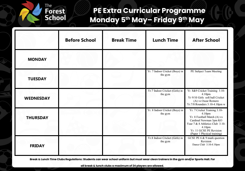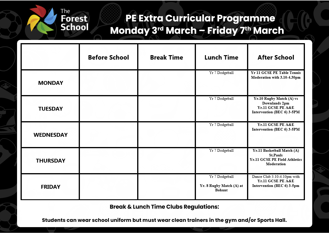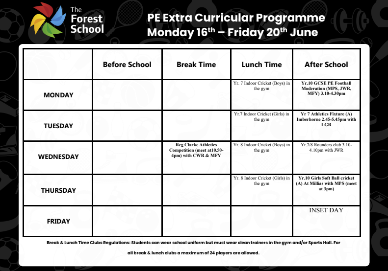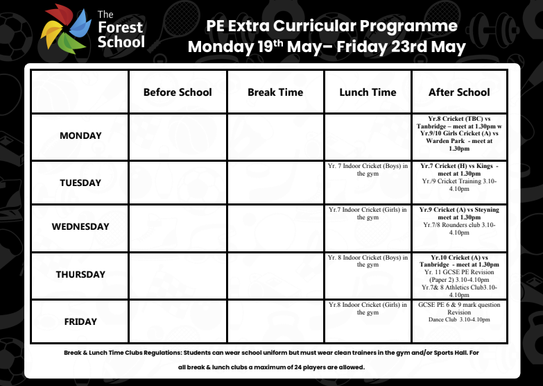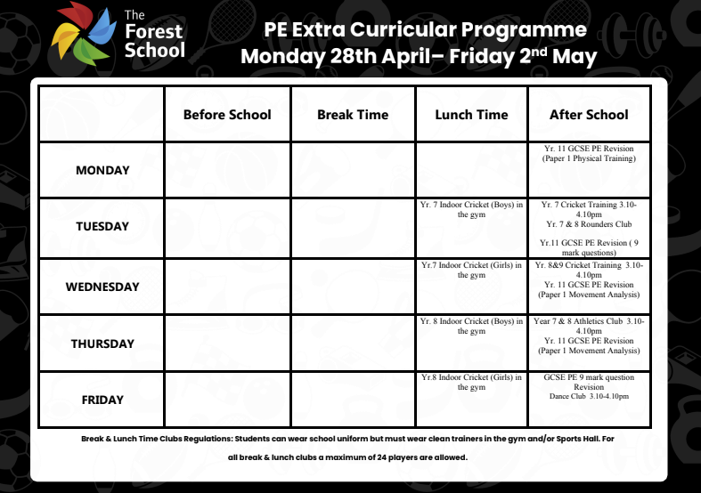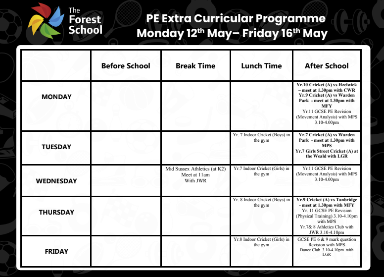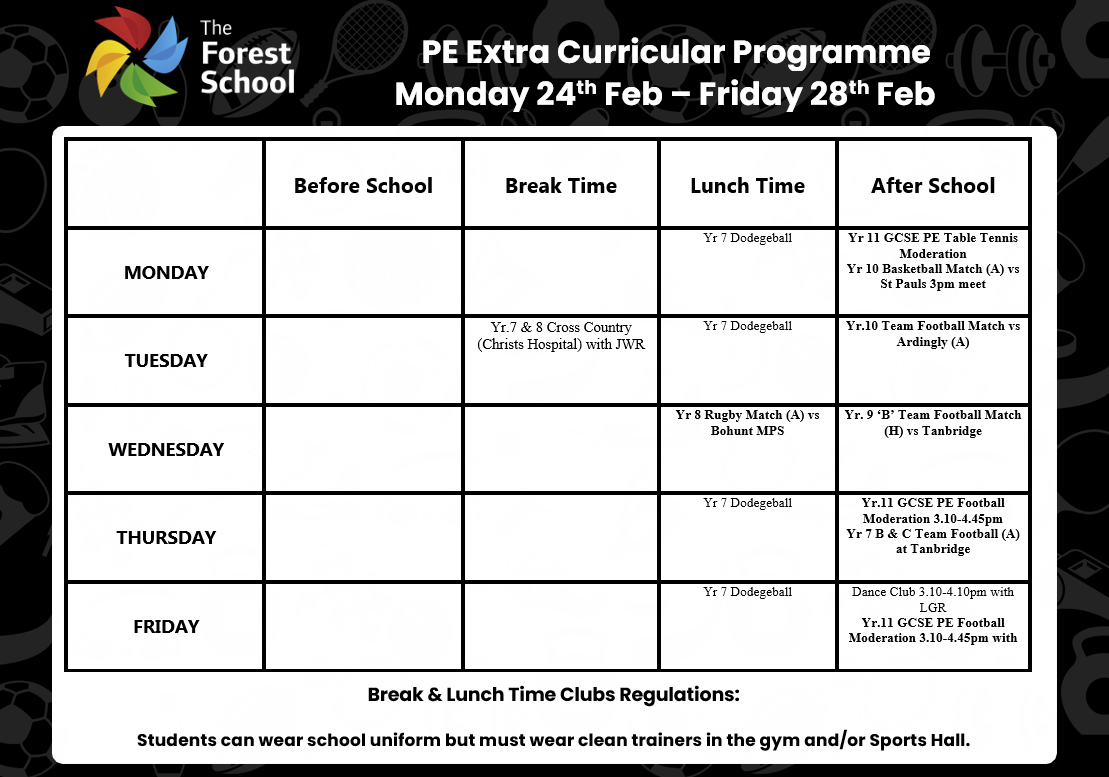 Student parent and staff version Mon 14th Oct Fri 18th Oct extra curricualr