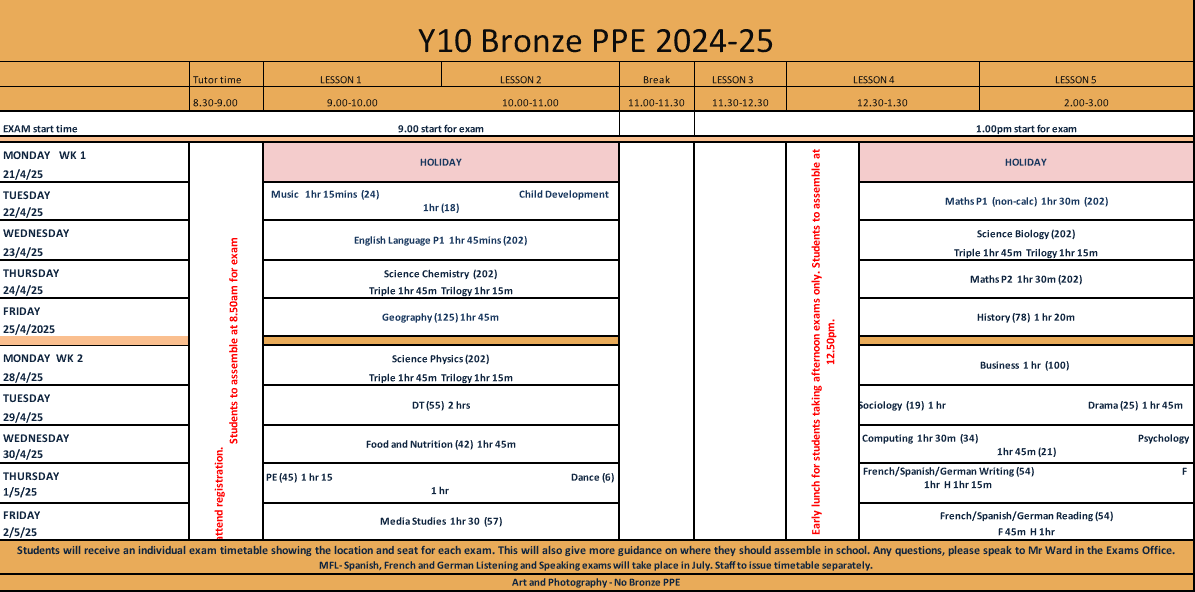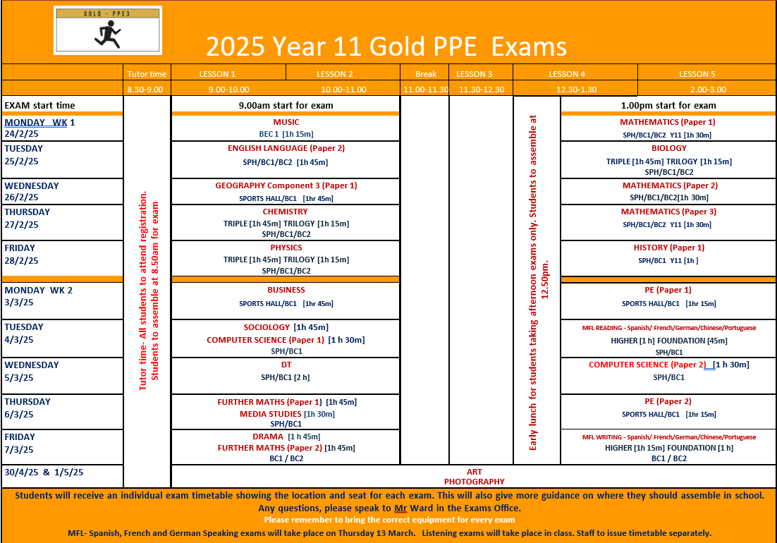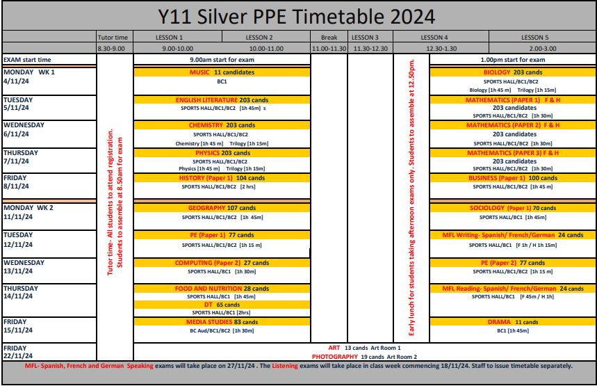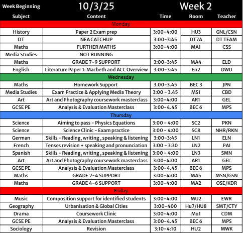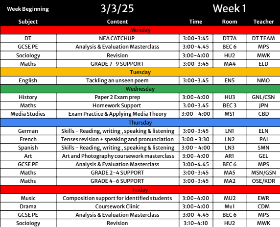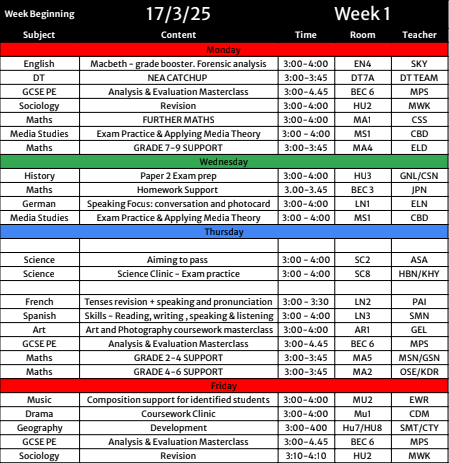 Yr 11 Afterschool Masterclass Timetable 11 03 24