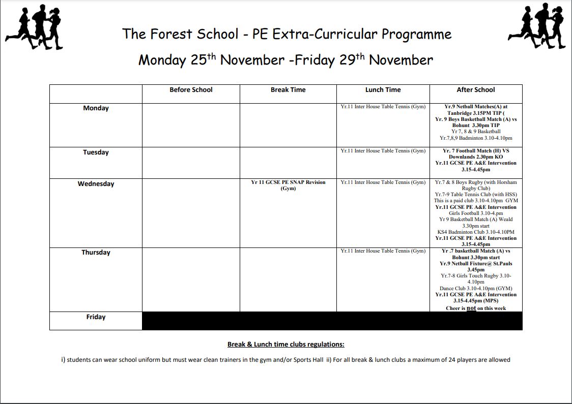 Student and parent version Mon 11th Nov Fri 15th Nov extra curricular