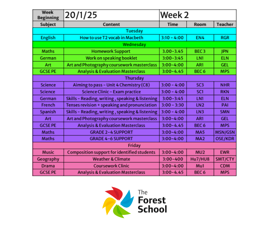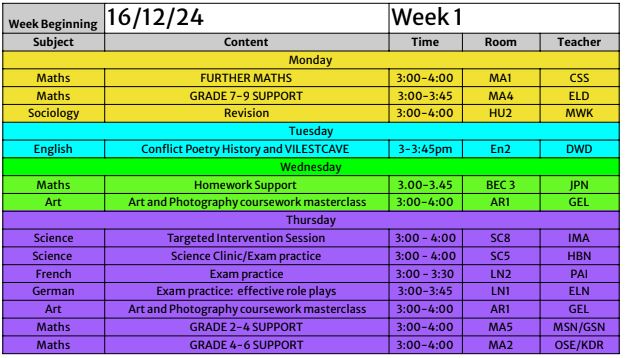 Yr 11 Afterschool Masterclass Timetable 15 1 24 1 2