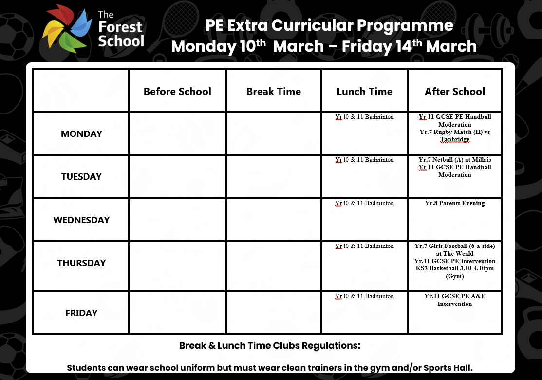 Student parent and teacher version Mon 7th Oct Fri 11th Oct extra curricualr
