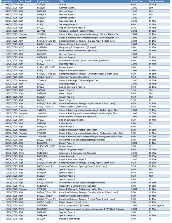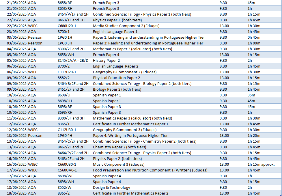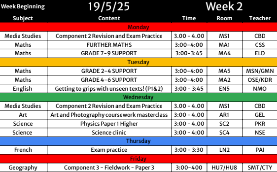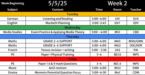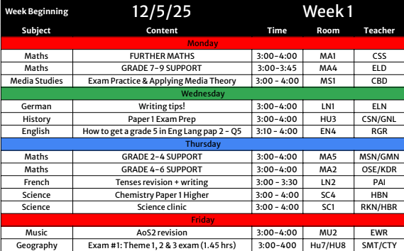 Yr 11 Afterschool Masterclass Timetable 29 4 24