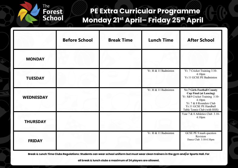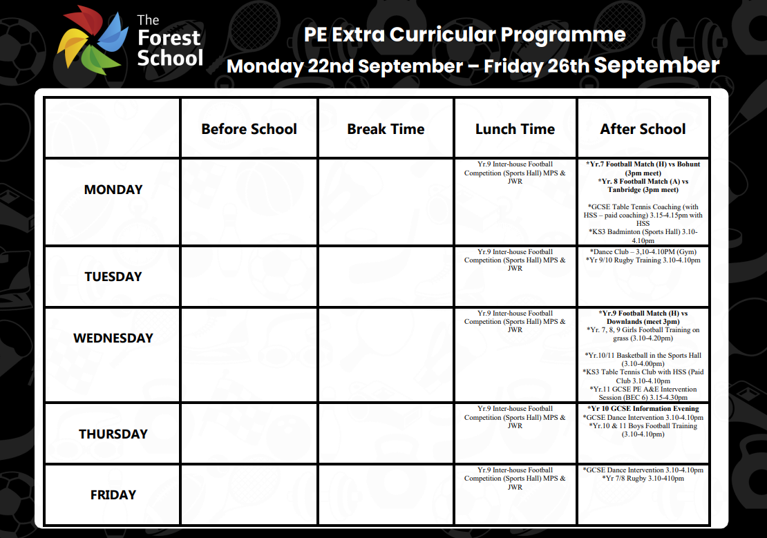 Student and Parent version of extra curricular Mon 16th Sept Fri 20th Sept