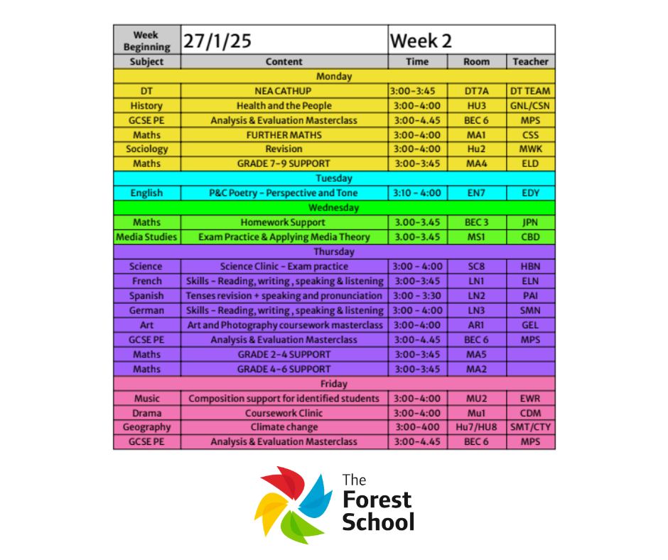 Yr 11 Afterschool Masterclass Timetable 29 1 24